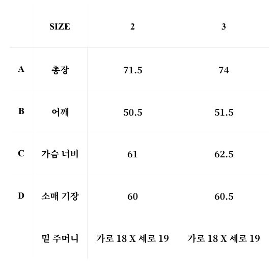 - 실제 제품의 사이즈는 사이즈표와 1~2cm 정도 오차가 있을 수 있습니다.