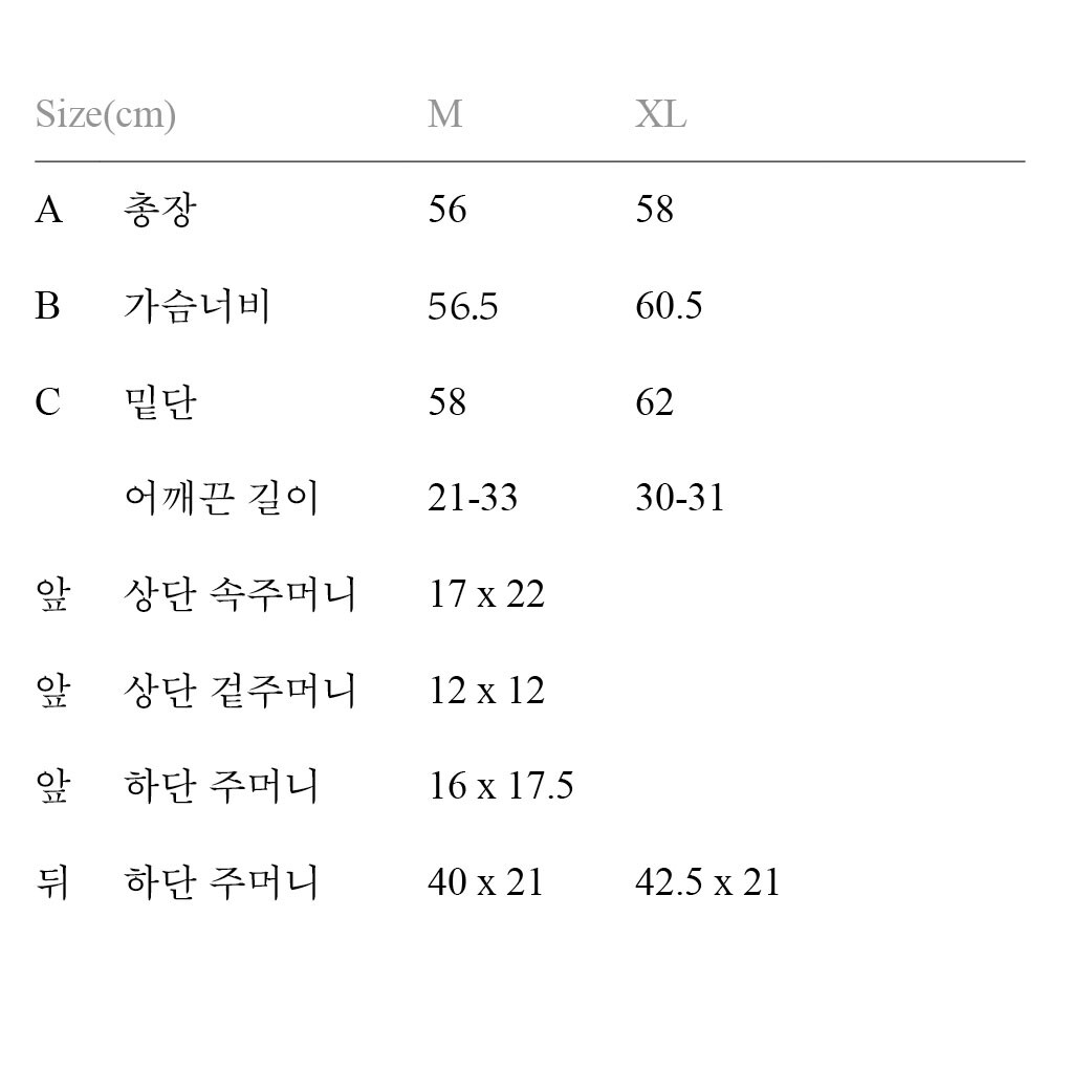 · 겉감은 왁스코팅 된 코튼/나일론 원단을 사용하였으며 등 부분은 메쉬소재를 사용하였습니다.