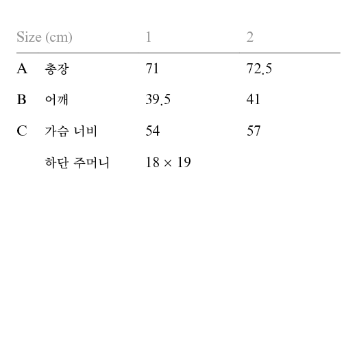 - 실제 제품의 사이즈는 사이즈표와 1~2cm 정도 오차가 있을 수 있습니다.