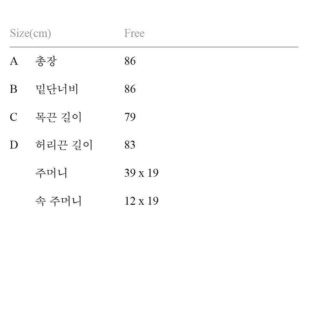 - 실제 제품의 사이즈는 사이즈표와 1~2cm 정도 오차가 있을 수 있습니다.